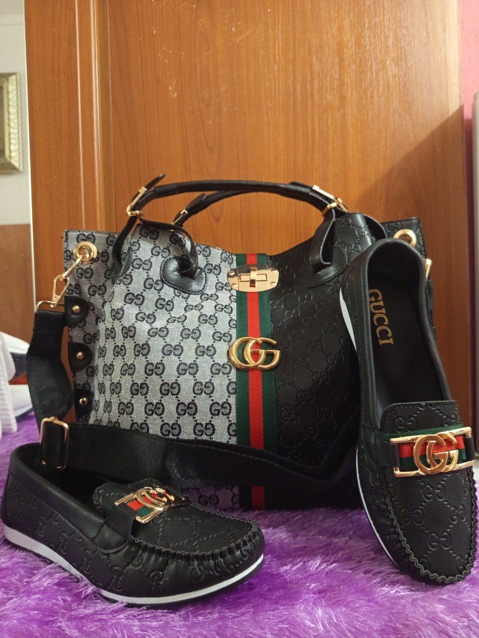 Ensemble sac à main & Ballerines de luxe pointure 39 couleur noir blanc.